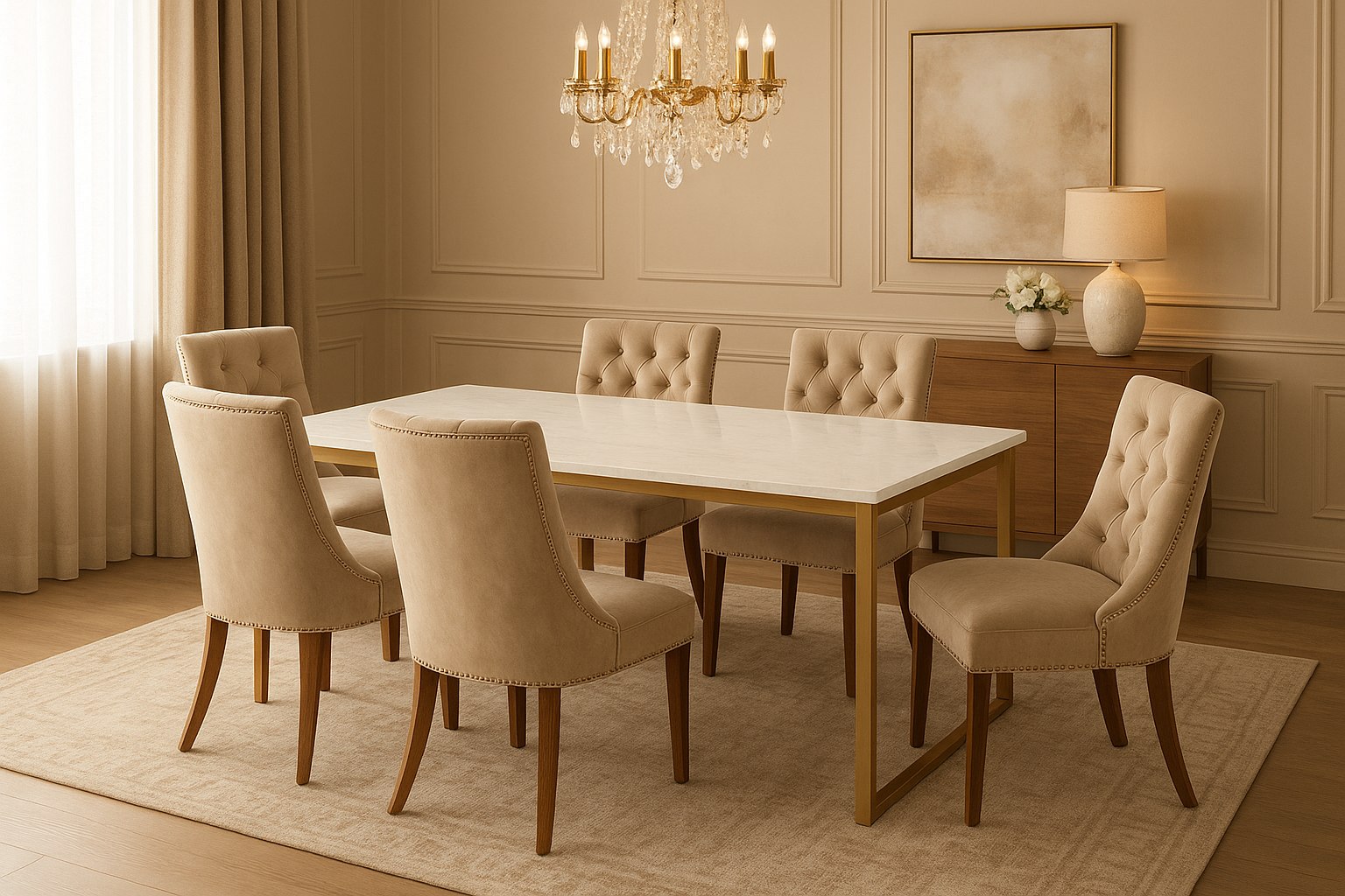 - Sleek Faux Marble Tabletop: The dining table features a durable and easy-to-clean faux marble finish, offering the high-end look of marble without the maintenance.