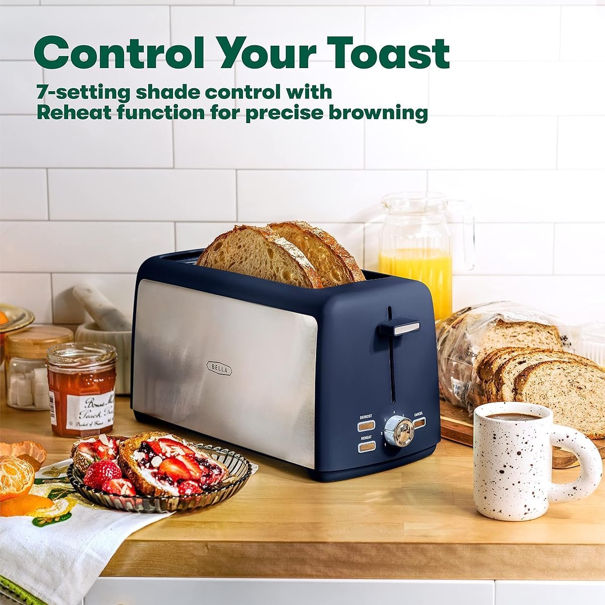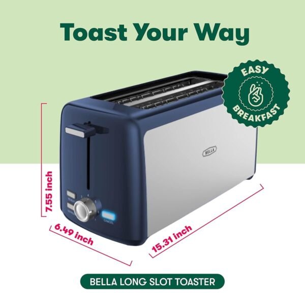Start your day right with the BELLA 4-Slice Long Slot Toaster, designed to handle all your toasting needs with style and efficiency. This toaster features two extra-long slots, perfect for fitting four standard slices of bread, or two large, artisanal slices, bagels, or pastries that won’t fit in a traditional toaster.