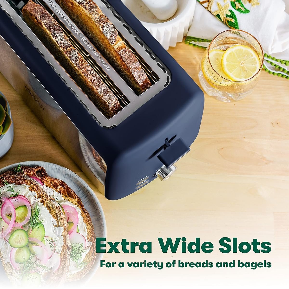 - Long Slot Design: The extra-long slots are ideal for toasting a variety of breads, from standard slices to larger, bakery-style loaves and bagels.