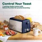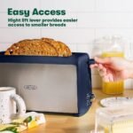 - Stylish Design: The combination of brushed stainless steel and a vibrant blue finish makes this toaster a modern and attractive addition to any kitchen decor.