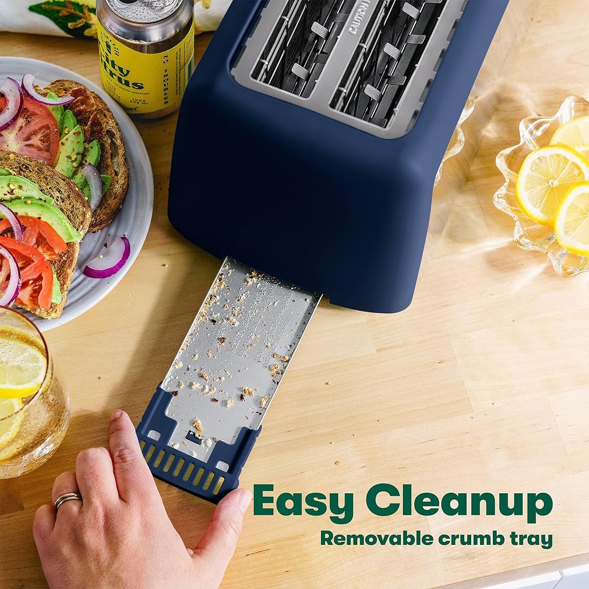 - Removable Crumb Tray: The easy-to-remove crumb tray slides out for quick and simple cleanup, keeping your countertop tidy.