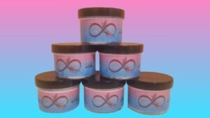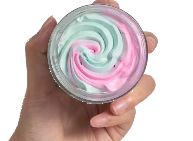 Ingredients: Shea butter, Mango butter, Lavender butter, Avocado butter, Coconut oil, Olive oil, Grapeseed oil, Tea Tree oil, Vitamin E oil, Castor oil, Lavender oil, Peppermint oil, Avocado oil, Argan oil, Mica Coloring & Fragrance.
